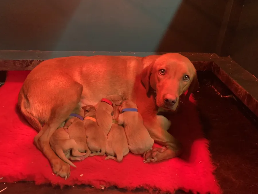 An exceptional litter of Fox Red Labrador puppies ready to go end of April. Being raised in a home with other dogs & small children.