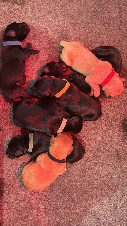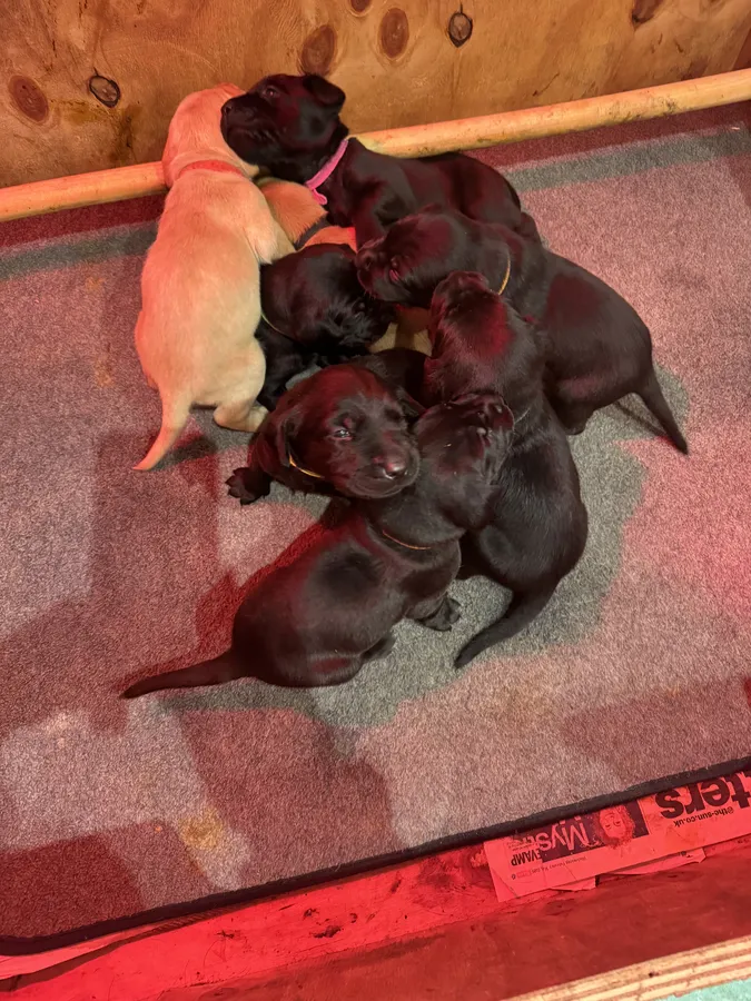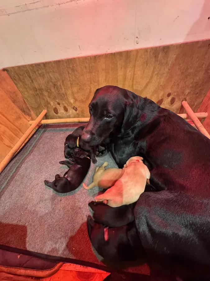 We are delighted to announce a beautiful litter of KC registered Labrador Retriever puppies, born on 28th February 2026. These puppies come from strong working and show dog bloodlines.