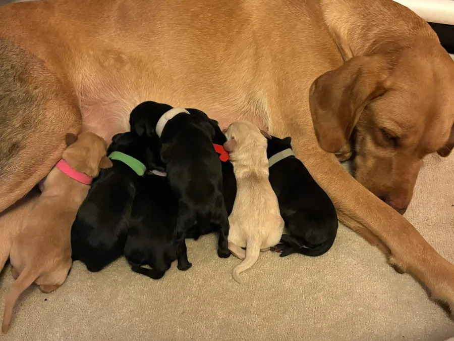 Both parents are very calm, biddable dogs who pick up multiple times a week.