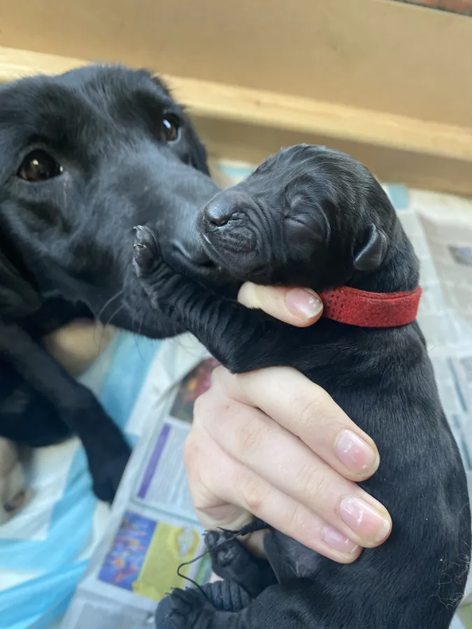 The sire is my father’s dog, a beautiful black Labrador who is also an amazing working dog and has proven himself many times each season. He is KC registered under Henwickmanor Gunpowder.
