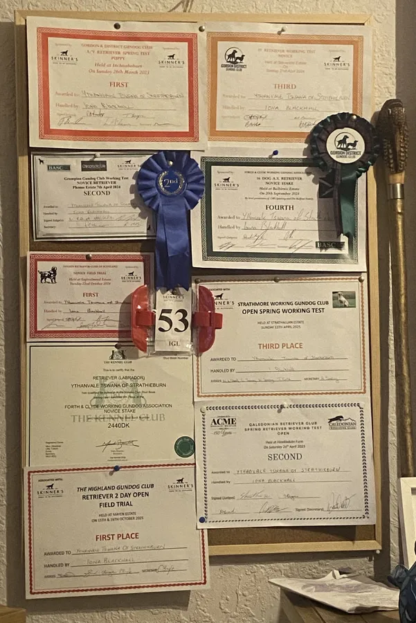 At 3.5 years old, Qualified for this years 2025 IGL Retriever championships, that was held in the Scottish Borders, Lauder. Clyde made it through to day 2 of the championships.