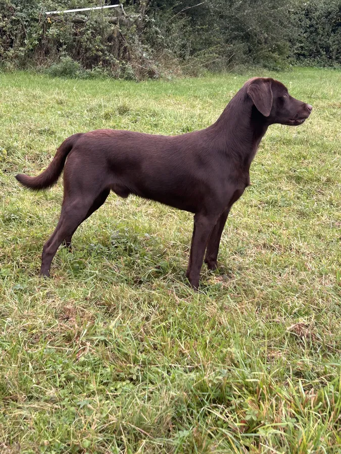 Proven Fully health tested working chocolate at stud. He is a gentleman with all bitches. He’s producing some lovely pups. He is kennel club registered with a excellent working pedigree which contains FTW and FTCH. Home bred so his mother can be seen. He has a good temperament with people and other dogs. He has been easy to train and is intelligent, gentle, biddable, athletic and powerful with good conformation. He loves to train and to be out in the shooting field. He has had his first season picking up working in a team or alone in the shooting field.