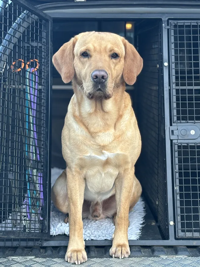 Goose is a big, strong and athletic yellow dog. He has a lovely temperament with a great attitude to life, a true gent. Extremely loyal and biddable and a pleasure to work and train. He competes regularly in working tests, having had placings, including a first and awarded best looking in the awards from the Labrador Retriever Club.