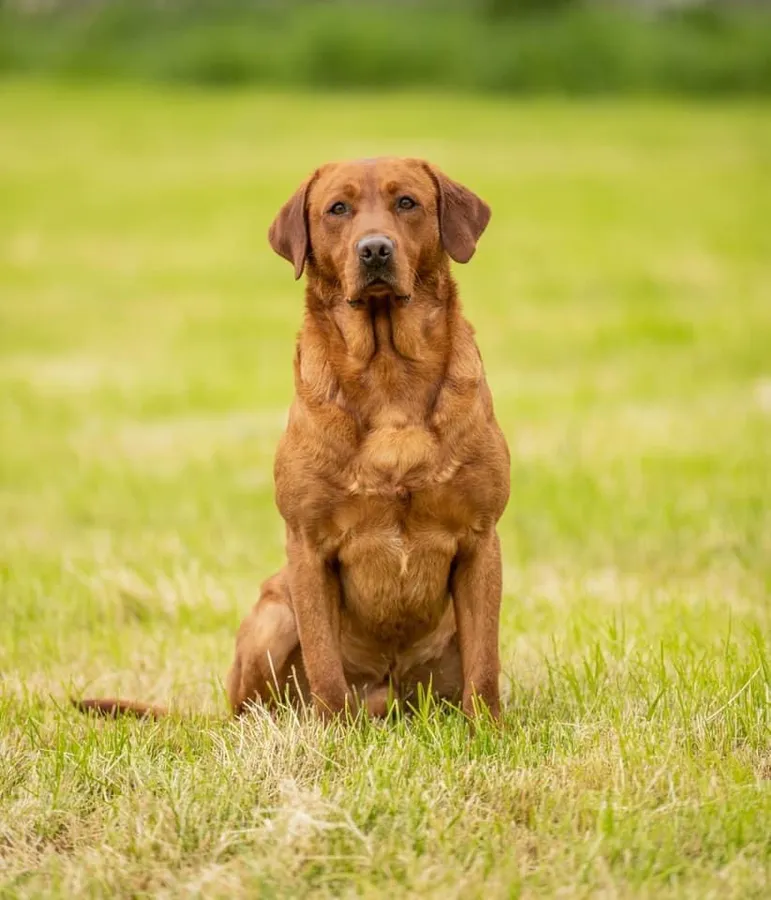 Tweed is our homebred stud, a strong built, muscular labrador with a lovely broad head. Last weighed at 33kg. He’s a very deep fox red shade of yellow colour, photos don’t do him justice. He’s got a fantastic temperament, very kind/soft natured and calm with that all important off switch when at home. He’s been a pleasure to work with/train. Always wanting to please.