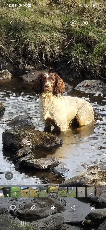 Liver and white bitch very steady,hunts, retrieves, works to whistle soft natured needs no scolding lives outside perfect rough shooting or beating dog.