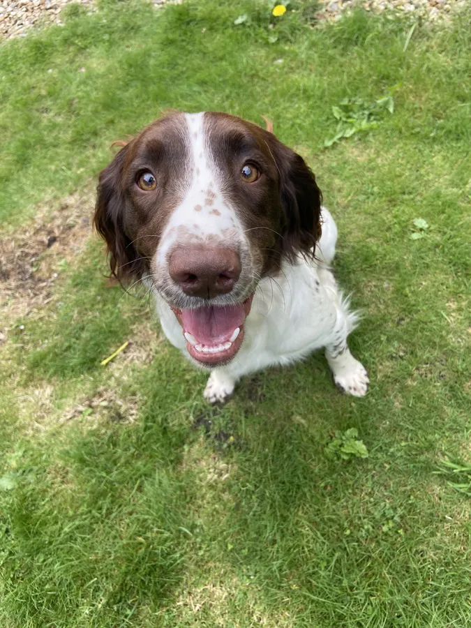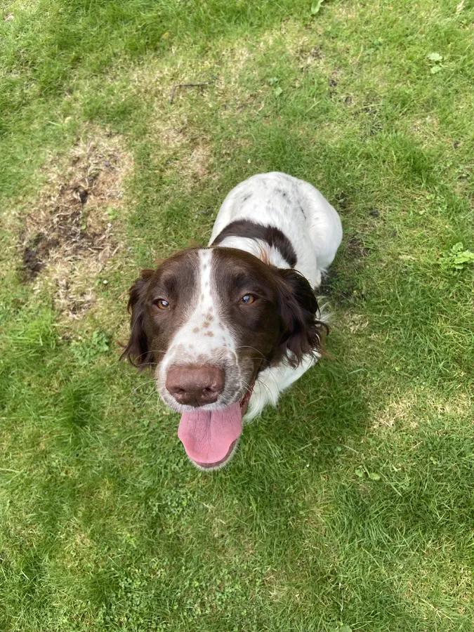 Cookie is really keen, loving and always up for a cuddle and love a days working. She has been working for me both beating and picking up for the last 2 seasons and always wants to please, she has a gentle character who learns quickly but she won’t deal well with any type of ‘firm discipline’ so if that is your training style then she probably is the right dog for you.