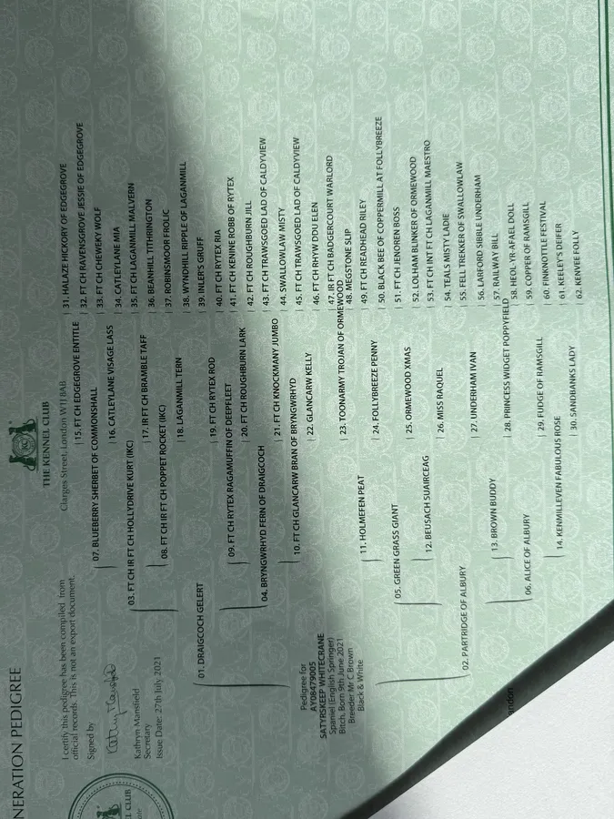 Kennel club registration and copy of 5 generation pedigree and KC puppy pack