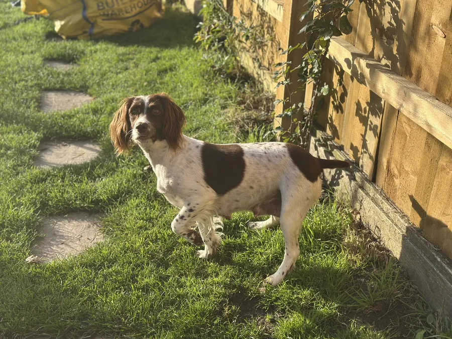She is liver and white in colour, very intelligent, well behaved and laid back. She has grown up with kids and cats and other dogs and socializes well with others and has an amazing temperament.