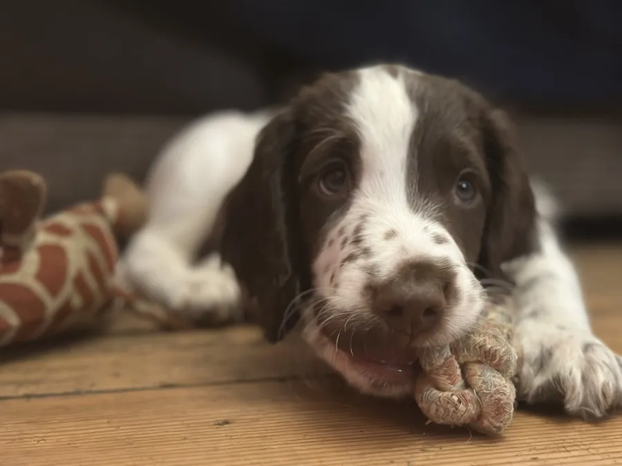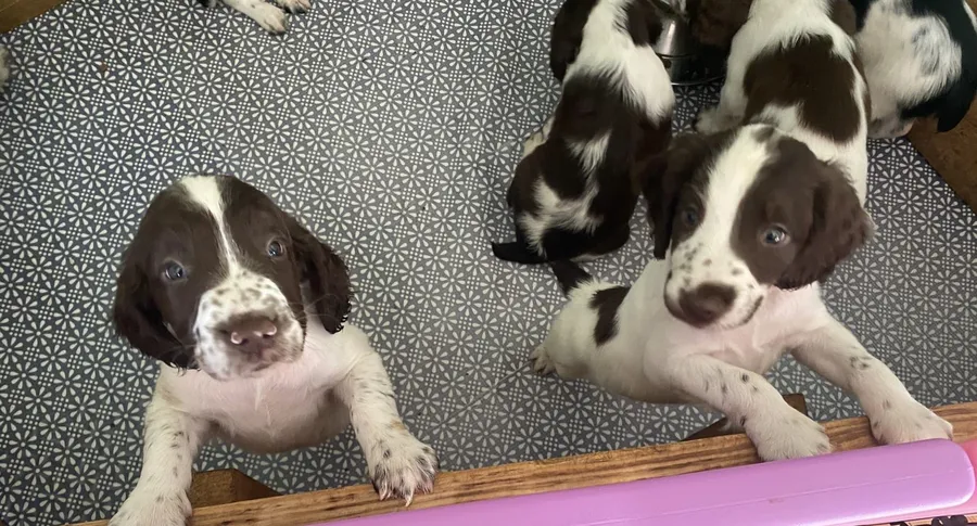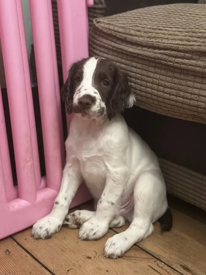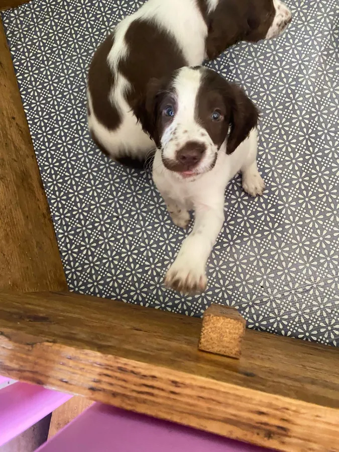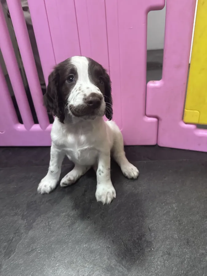 We only have 1 liver and white boy left. (Mainly white) They have all been legally docked by the vet and had their hind dew claws removed and will come with the official paperwork to prove this.