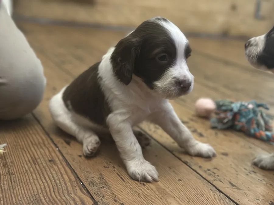 We only have 3 liver and white boys left. They have all been legally docked by the vet and had their hind dew claws removed and will come with the official paperwork to prove this.