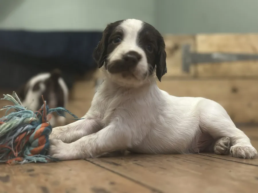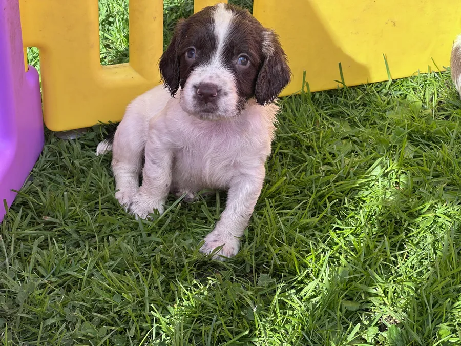 Here I have 3 boy working English springer spaniel puppies for sale from our litter of 7.