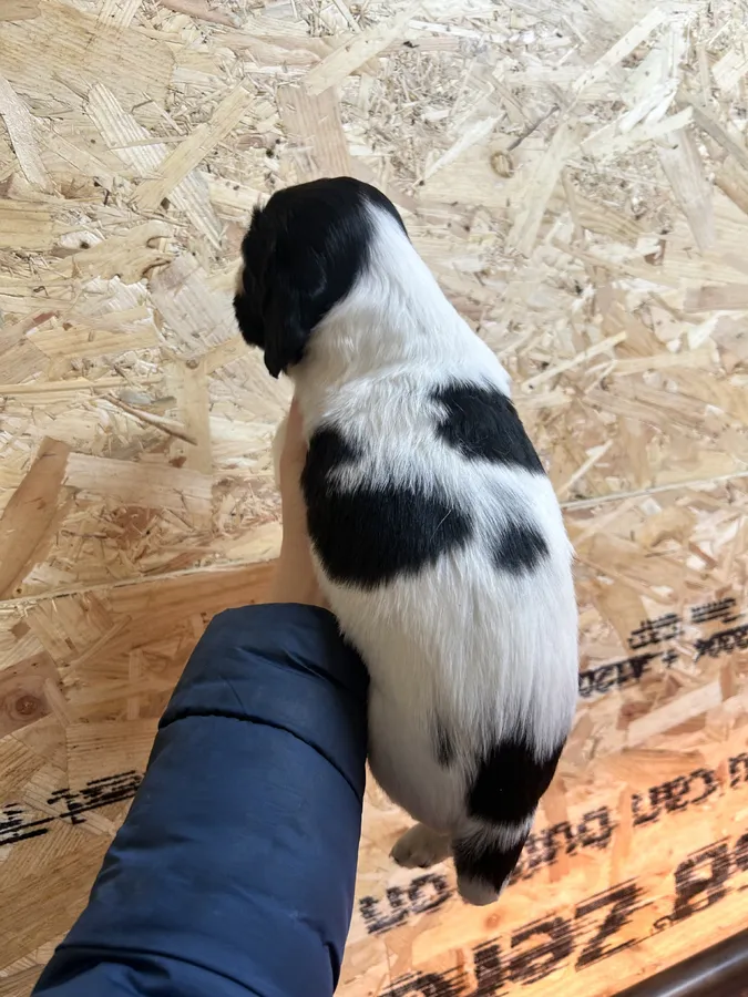 Sire (B&W)is an old fashioned bred KC registered working dog, proven himself well in the field both beating and picking up. FTCH lines inc well known Buccleuch Pepper. Big barrel chested dog, keen and biddable.