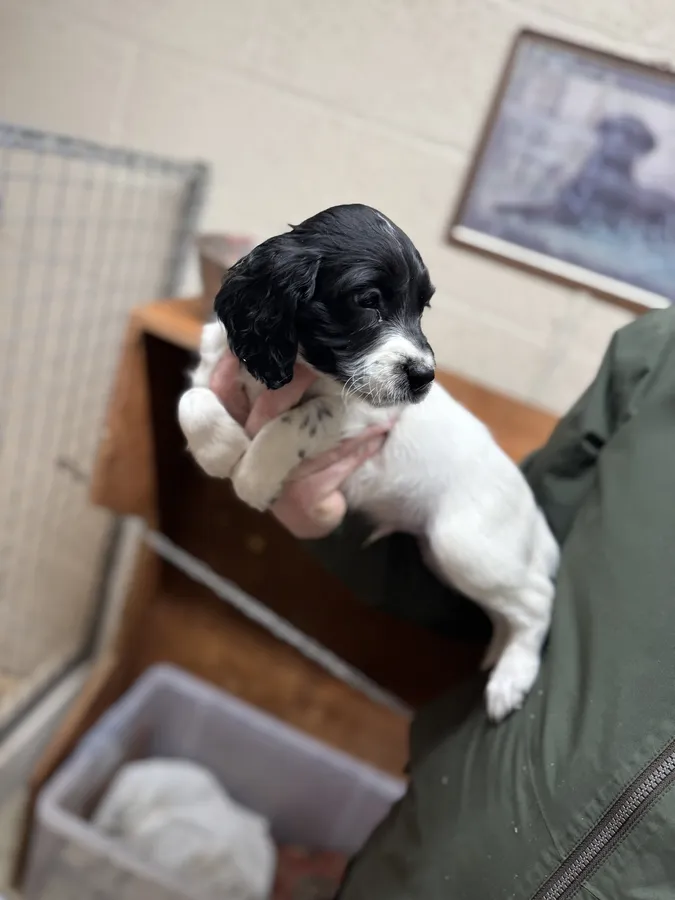 Only males left!! Here we have a stunning litter of 6 working springer spaniel pups from bracken. Bracken is a lovely example of a springer. She’s very loyal, easy going and loves a fuss. Bracken is trained to high standard and loves been out in the field working along side the rest of our gun dogs. Sire is also called bracken we work beside him every week out in the field. He is a lovely biddable dog with lots of drive with a hell of a nose. Both parents are fully health tested. All pups are docked and dew clawed, Kc registered, wormed and fleed up to date. Ready to leave on 7th January! If any more questions please call emily on 0787.933.5411