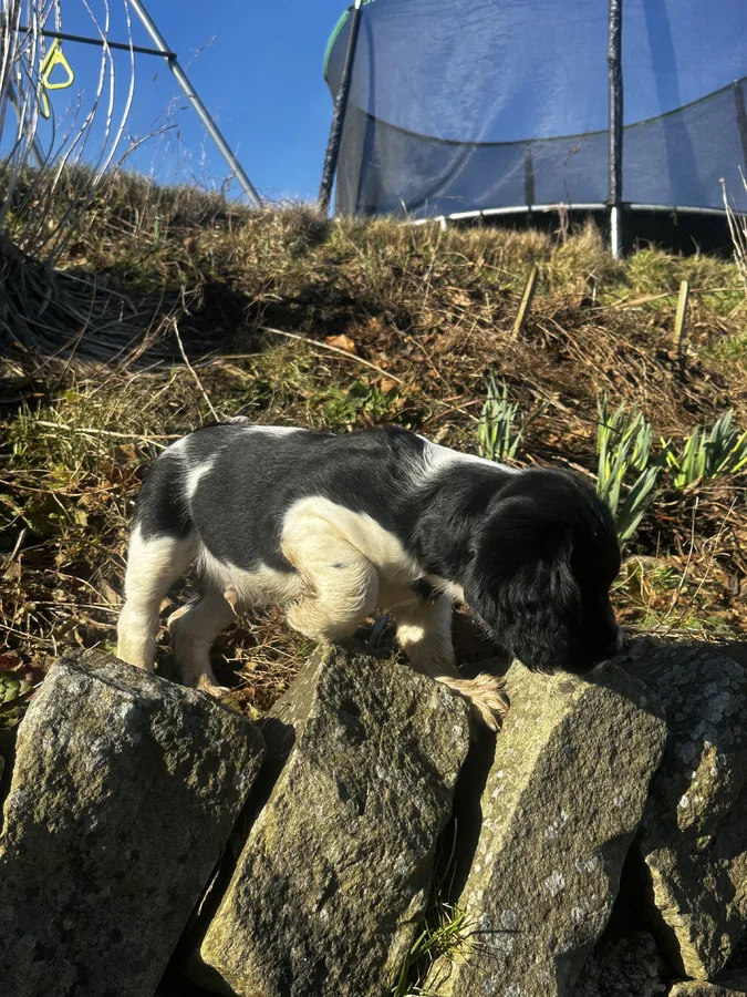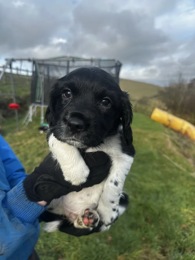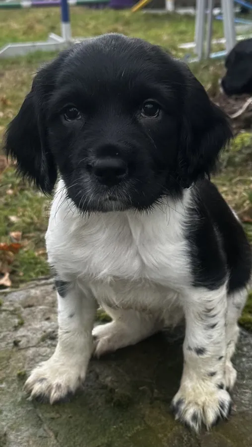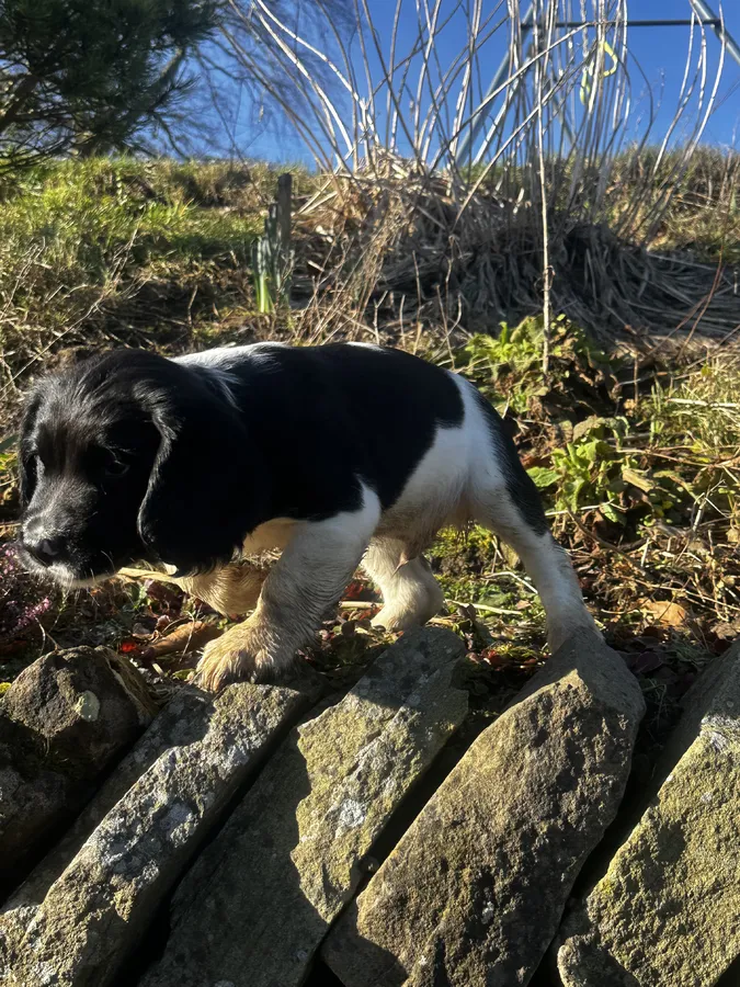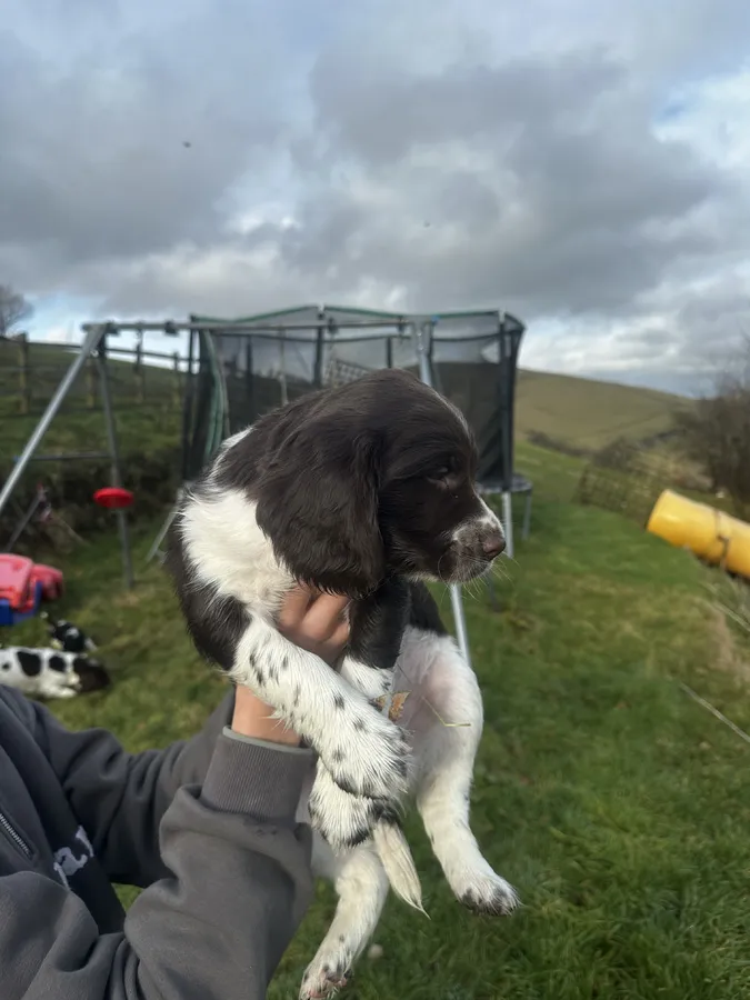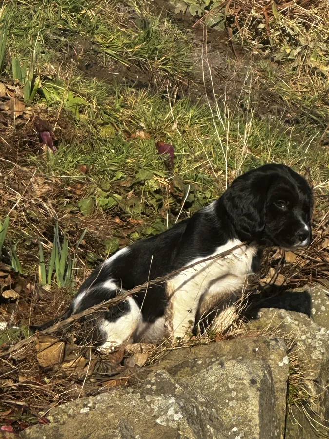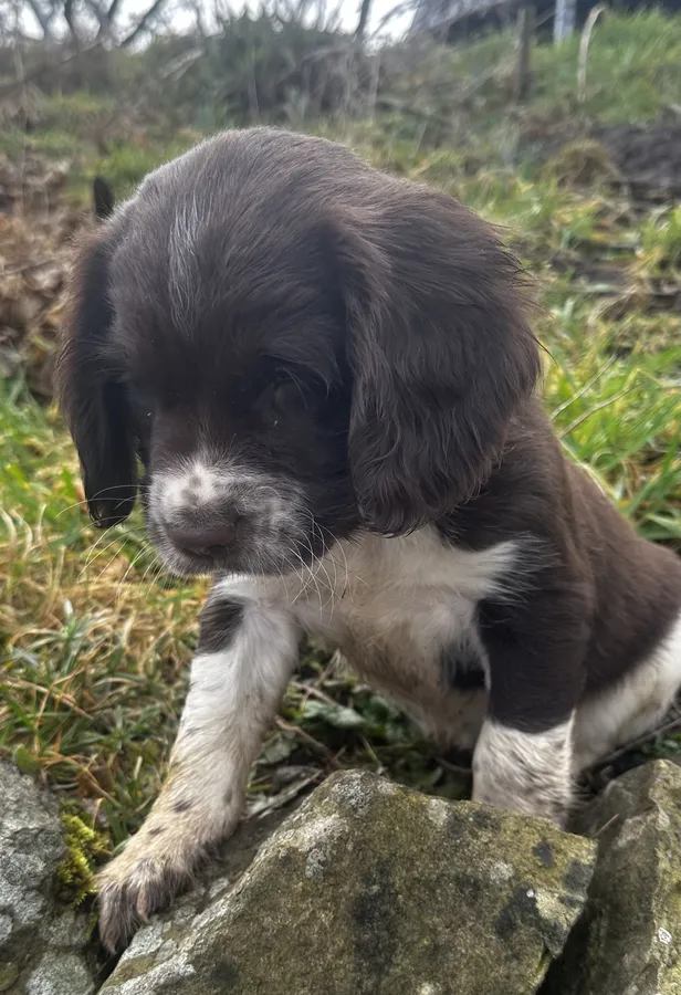 Delightful litter of ESS puppies 8 weeks old on 9 Feb. Heavily marked.