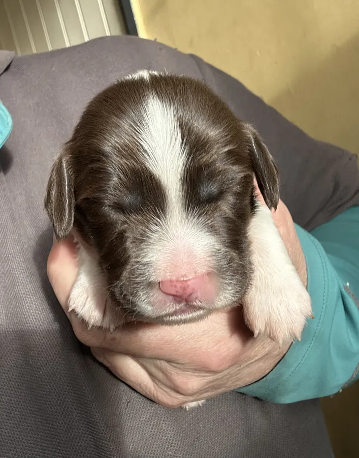 Born and raised in our family home with no expense spared by veterinary nurse. Will be used to all household goings on and noises etc and other dogs.