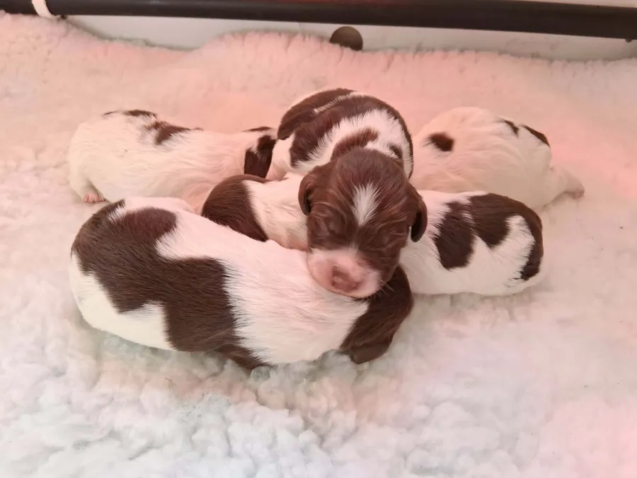 We currently have a litter of springer spaniel puppies from our beautiful liver and white kc reg springer Wren.