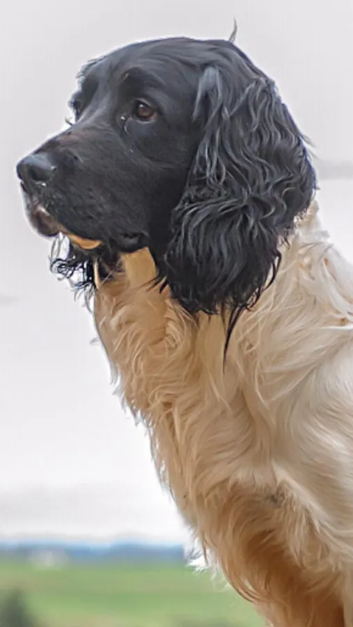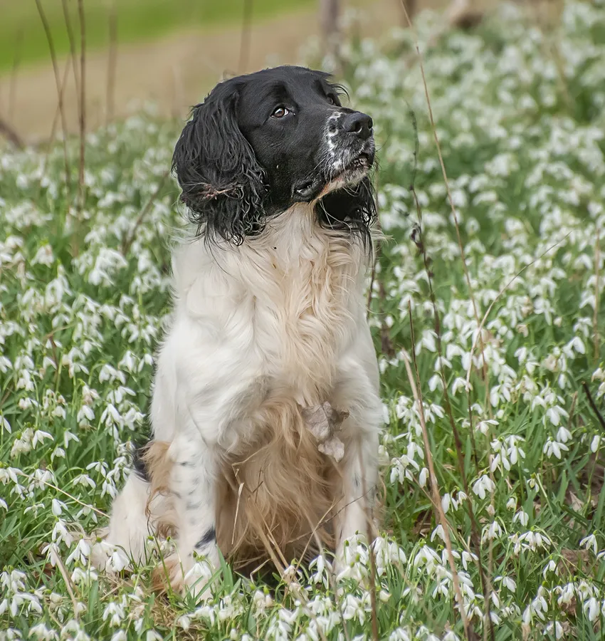 Tank is a 6th generation home bred old fashioned type black and white English Springer Spaniel. His appearance is very muscular, a solid square head with a soft and loving temperament. Tank has been a pleasure to train and although he has 18 Ft Ch in his pedigree he dose 30+ days in the beating line. He is now proven and has produced some lively puppies. Tank is health tested: