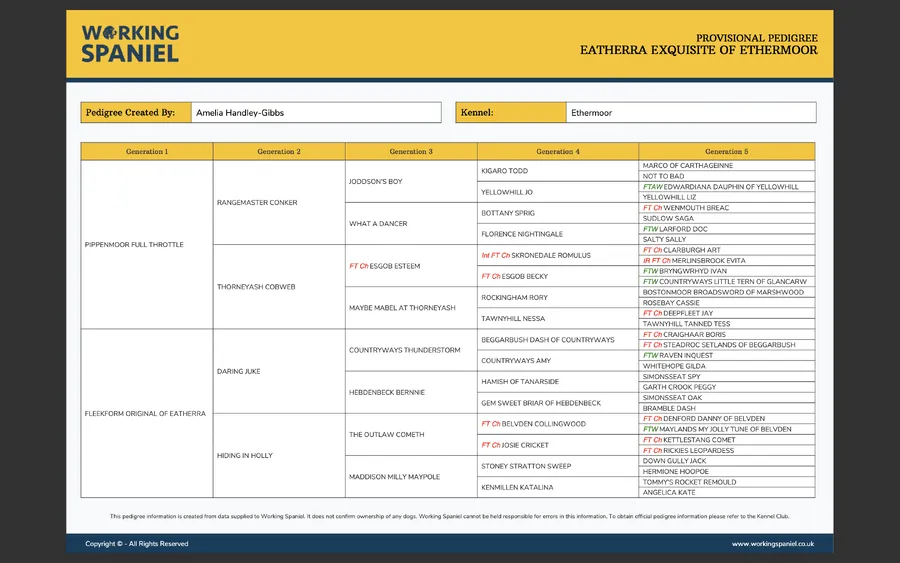 Eatherra Exquisite of Ethermoor ‘Archer’ is fully health tested and works during the shoot season.