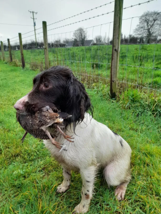 Fully trained English springer spaniel bitch, irish bread hard going honest wants to please all the time, has ran in trials and been placed, reluctant sale due to lack of time to trial her, would suit someone look to enter trialing, also shooting picking up or beating, she can do it all, transport to UK is not a problem can be arranged in a day.