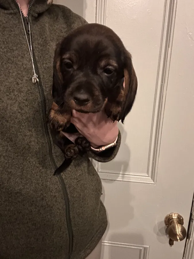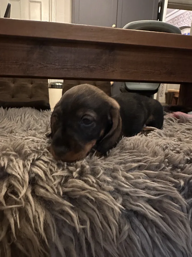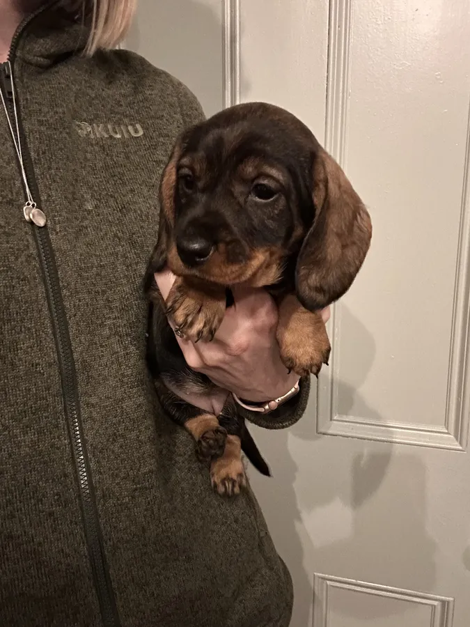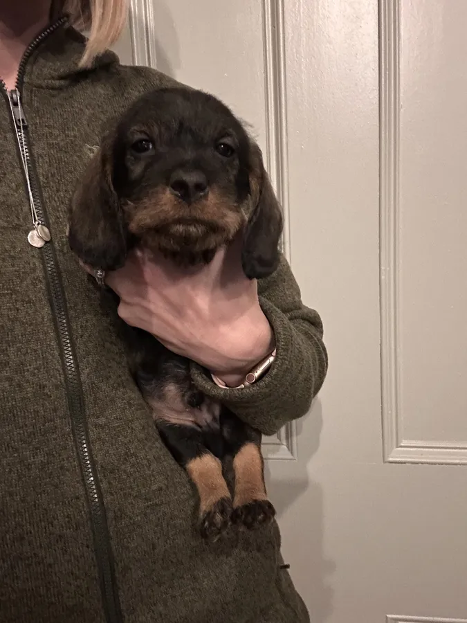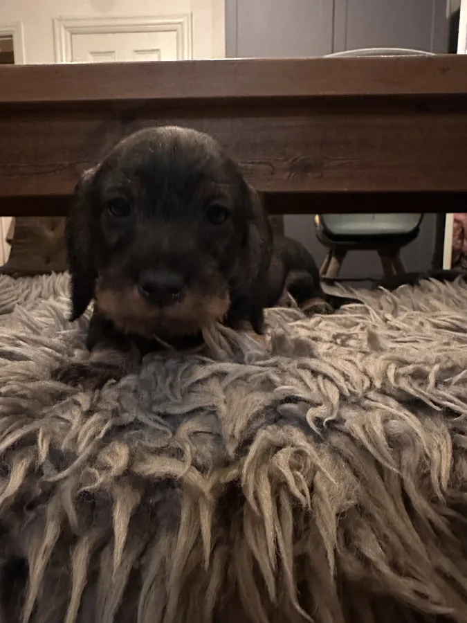 We have a litter of standard wirehaired teckels available from our lovely Ethel. Ethel is a key part of our young family, she is amazing with our children but is also an incredible working dog - she is an all rounder and is my husband’s (a gamekeeper) day-to-day dog who goes everywhere with him from shoot days to tracking and has been to ground. She is very well bred.