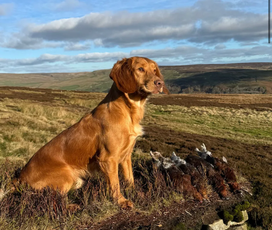 Flo is a working dog as well as a family pet, she spends 20 days plus sat on the peg as well as walked up days and some picking up. She retrieves fur or feather, and happily sits quietly on a 50 bird day or a 250 bird day.