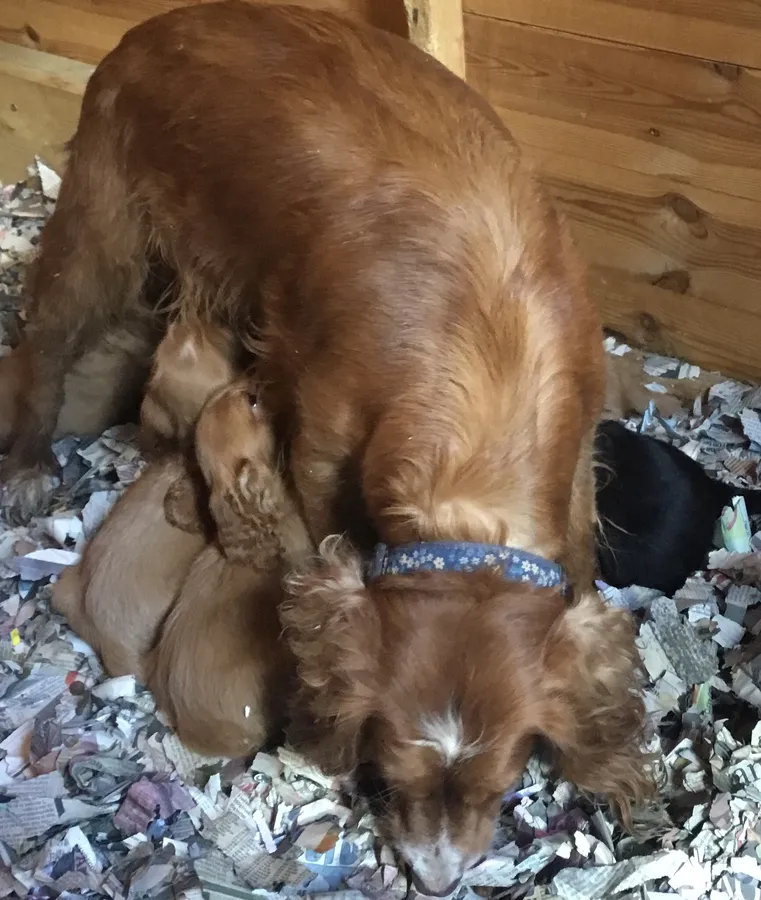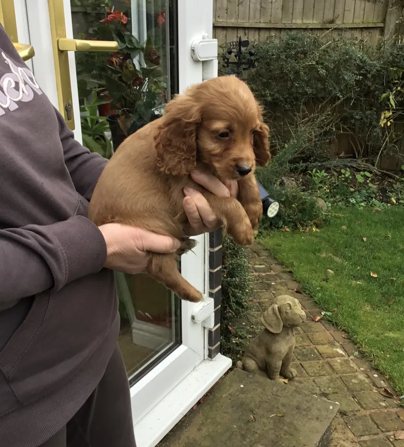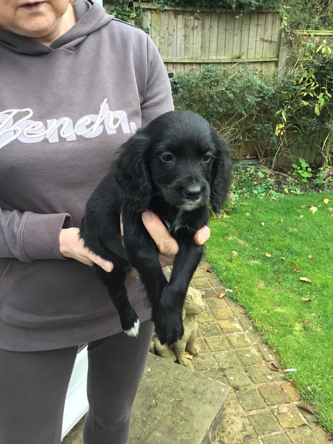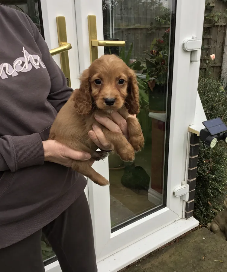 A good quality litter of working type cocker spaniel puppies for sale born on the 7th September . There are dogs and bitches available all in good health and doing well. The mother of the puppies is a red cocker good working bitch and a family pet. She is kennel club registered with a good pedigree also health tested clear . She has an outstanding temperament a real sweet dog. The father of the puppies is also a red working type cocker spaniel stud dog kennel club registered with a top quality pedigree with field champions throughout his pedigree. He is also health tested clear and has a very nice temperament a friendly chap also still out working in the field. The puppies will be kennel club registered and microchipped / legally docked and dew clawed by a (vet)veterinarian practice followed by a full health check before leaving for their new homes and given their 1st vaccination along with 5 weeks free insurance. The puppies are being wormed and flea treated every 2 weeks and are fed on good quality puppy food to ensure a good start in life. The puppies will be well socialised and ready to leave for their new homes on the 2nd November onwards. To view the puppies or for more information please feel free to contact me . Pups available red boy £1300 black boy & girl £1000 =