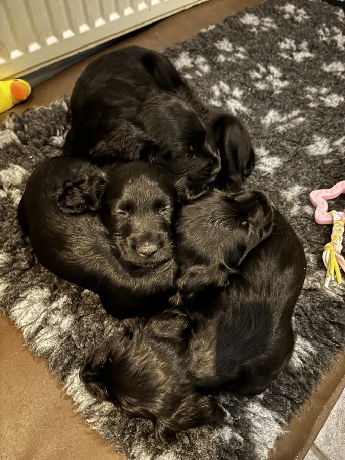 Female Cocker Spaniel Puppy – Excellent Pedigree From Excellent Working Lines. We have a lovely litter of 7 Working Cocker Spaniel puppies – 4 dogs and 3 bitches – born 11th September and ready for their new homes from 6th November. They are currently 7 weeks old and thriving. Both parents are proven working cockers with excellent temperaments and strong pedigrees. Dad is a Novice Field Trial Champion, and both parents’ papers can be viewed. Mum and grandmother can both be seen here at home. The puppies have been legally docked with full veterinary certificates provided. Raised in a loving family home, they are well socialised, confident, and used to children and household noises. These pups will make ideal working dogs or active family companions in the right homes. Please get in touch for more information, photos or to arrange a viewing. Serious enquiries only. No time wasters please. Deposit required. 1 bitch available.