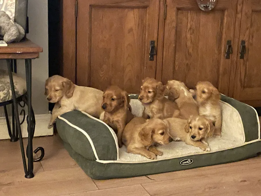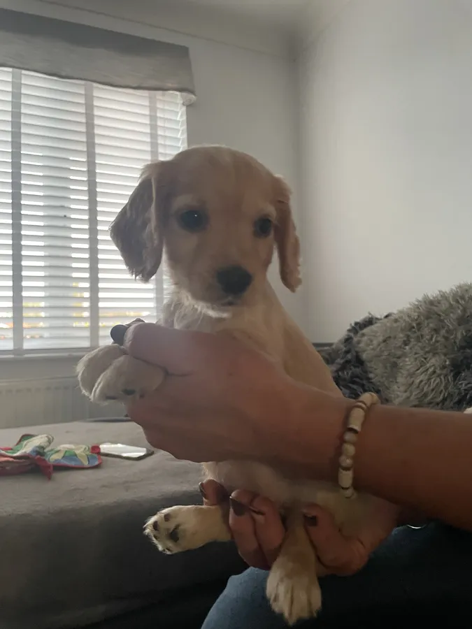Golden and red working cocker spaniel puppies, born 15.08.25, 7x lovely, healthy, strong, confident, well socialised, with people and our other 3 dogs. 3 bitches 3 dogs available. Pups will be vet health checked, microchipped,legally docked (1 dogs has full tail) and dew clawed, regularly wormed and flea treated and has had their first injection,