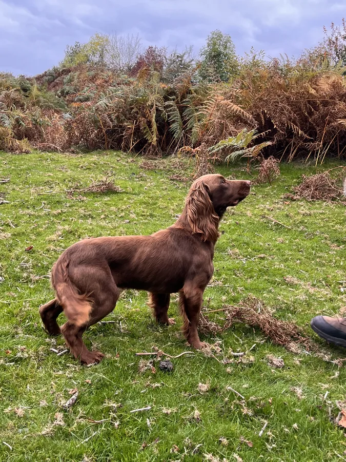 He hunts and quarters up, handles back, left and right, has been shot over and is steady to the flush. Very good all round dog for his age, he has been produced with a view to compete, but is just lacking a bit of speed.