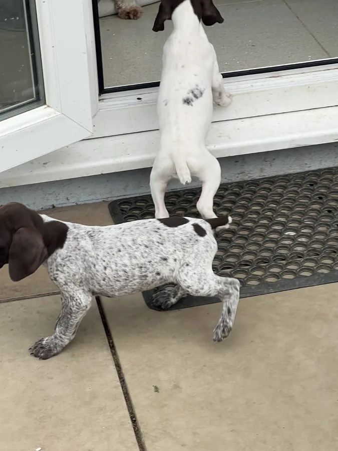 German Shorthaired Pointer pups Both parents are working dogs. Sire works counting grouse Dam works under guns and falconry Would like them to go to working or active forever homes also will be vetted. This is my 4th generation of working GSP’s. This breeding does not come around everyday 079431