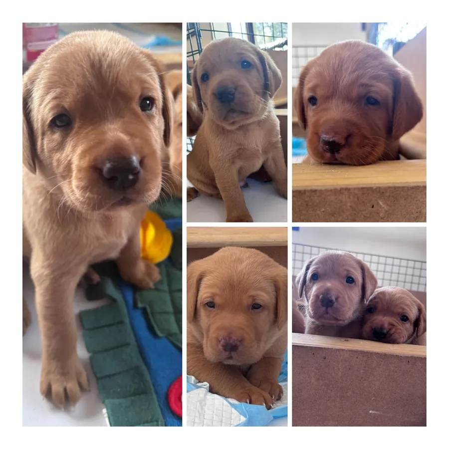 Beautiful fox red labrador puppies for sale ❤️ From the exceptional mating of Cuprumrosa Ruby’s Lass x Reg the Wonder Boy. Parents fully health checked. Looking for forever homes from 11th Oct
