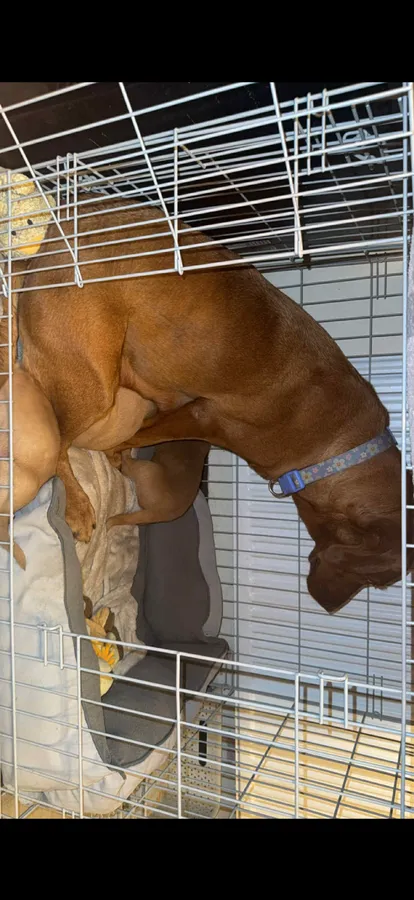 ⢠Mum is a stunning Fox Red show-type Labrador with a calm, gentle nature.