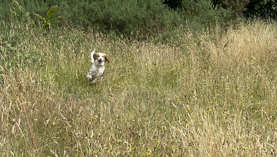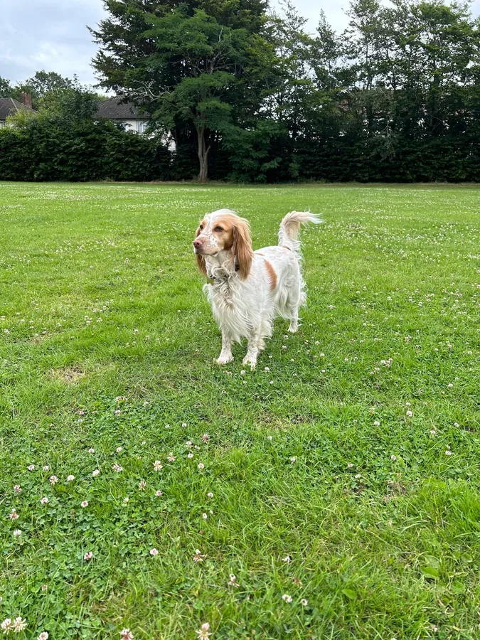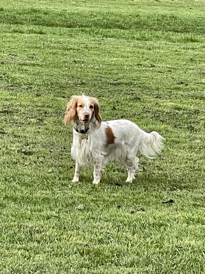Holly is an alert, intelligent, healthy Sprocker spaniel. Mother is a Springer spaniel and Dad is a show Cocker spaniel. She’s 3 years old and not been spayed. She has excellent recall, has basic command training but would need full gun dog training. She would flourish working and living on a farm or similar busy outdoor living situation with a kind loving family.
