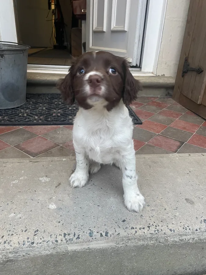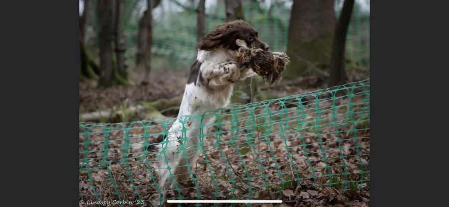 She is already happy to carry and has the start of a retrieve, showing natural hunting ability, nose and tail down. Lovely eye contact, pretty face and biddable nature.